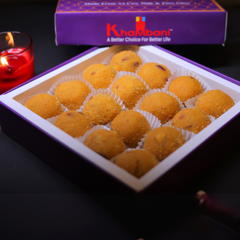 There’s nothing quite like the warmth of a freshly made besan laddoo — and at Khambani, we keep that tradition alive with every bite. Our Besan Laddoo is made using slow-roasted gram flour, khandsari sugar, and 100% pure A2 desi cow ghee. No shortcuts. No palm oil. Just the same method your grandmother swore by.