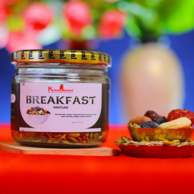 Khambani Breakfast Mixture is a carefully blended mix of roasted grains, dry fruits, seeds, and healthy crunchies designed to give your mornings a nutritious, energy-packed start. With every spoonful, you get the perfect balance of protein, fiber, and essential micronutrients — without any added sugar or preservatives.