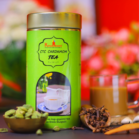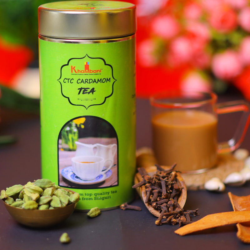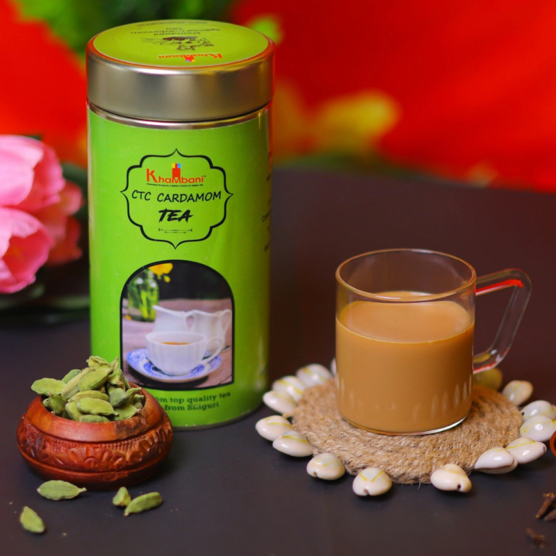 Khambani CTC Cardamom Tea is a premium blend of strong Assam CTC leaves infused with the sweet, aromatic flavor of cardamom (elaichi). Each cup delivers a bold body with a refreshing fragrance, making your everyday chai both energizing and soothing.