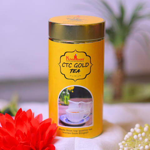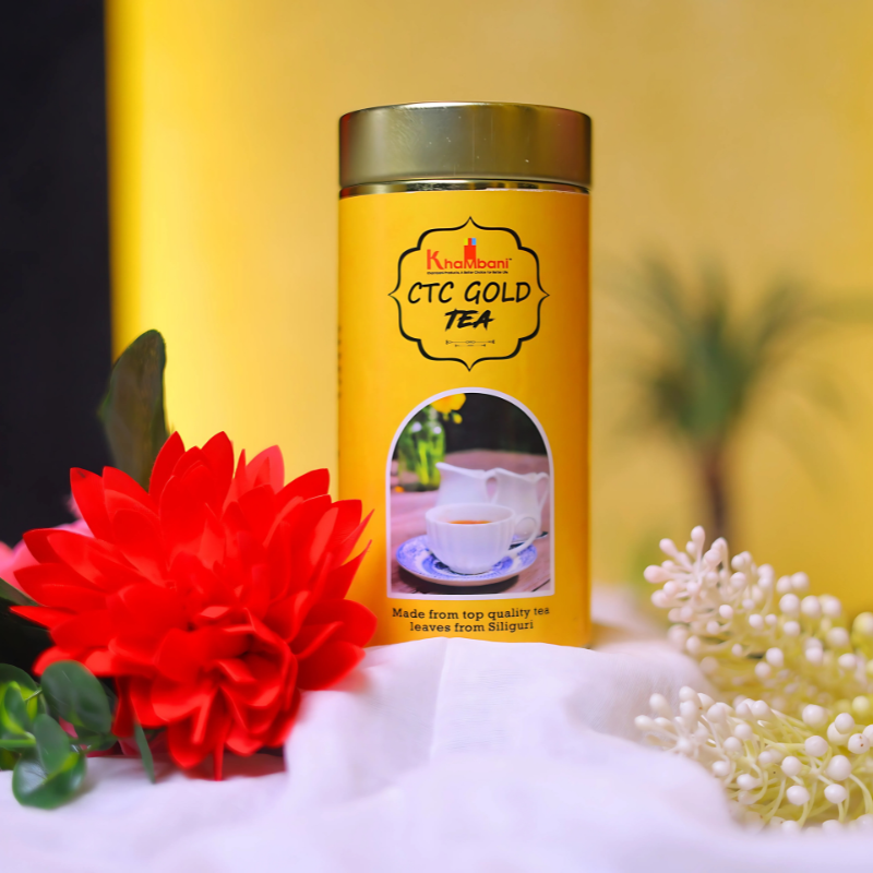 Khambani CTC Gold Tea is a premium blend of Assam CTC leaves, specially curated to give you a strong, full-bodied cup with a naturally golden hue. Its bold flavor, deep aroma, and refreshing taste make it a perfect choice for those who love their chai rich and satisfying.