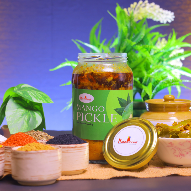 Handmade in small batches with care and without any artificial preservatives, Khambani Mango Pickle preserves the authenticity, aroma, and rich taste of traditional Indian pickles for your pantry and table.