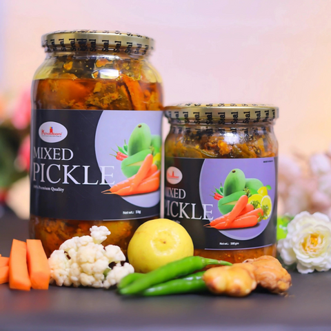 This traditional mixed pickle brings together the rich, vibrant flavors of hand-picked vegetables and fruits, expertly spiced to create a tangy and savory experience. From mango to carrot, cauliflower, and more, each ingredient is carefully selected to bring out the authentic Indian taste, offering a burst of flavor with every bite.