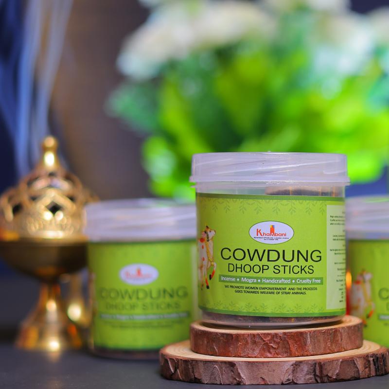 Khambani Mogra Dhoop brings the serene aroma of jasmine flowers into your pooja room. Handcrafted with a sacred blend of A2 desi cow dung, ghee, herbal resins, and pure mogra (jasmine) essence, this dhoop is a calming, spiritually enriching addition to your daily rituals. The soft floral fragrance is known to relax the mind, reduce anxiety, and deepen focus during meditation or prayer.