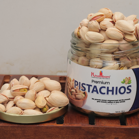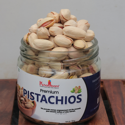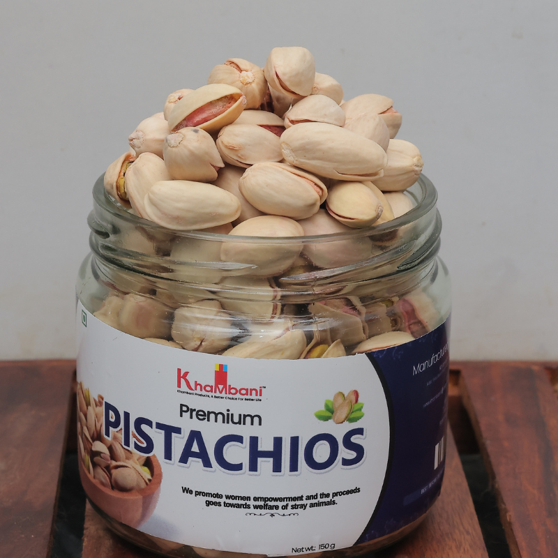 Khambani Pistachios bring you the perfect blend of taste and nutrition in a handful of lightly salted, premium-quality nuts. Packed with plant-based protein, healthy fats, fiber, antioxidants, and essential vitamins like B6 and E, these pistachios support heart health, brain function, and overall immunity.