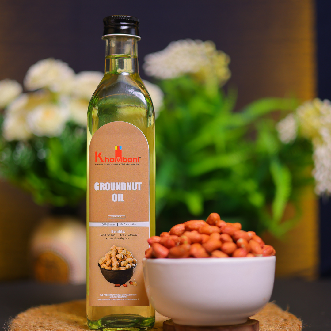 Handcrafted in small batches, Khambani Groundnut Oil is free from chemical processing, preservatives, and artificial additives. The oil maintains the authentic goodness of cold-pressed peanuts while offering a clean, natural, and pure cooking experience.